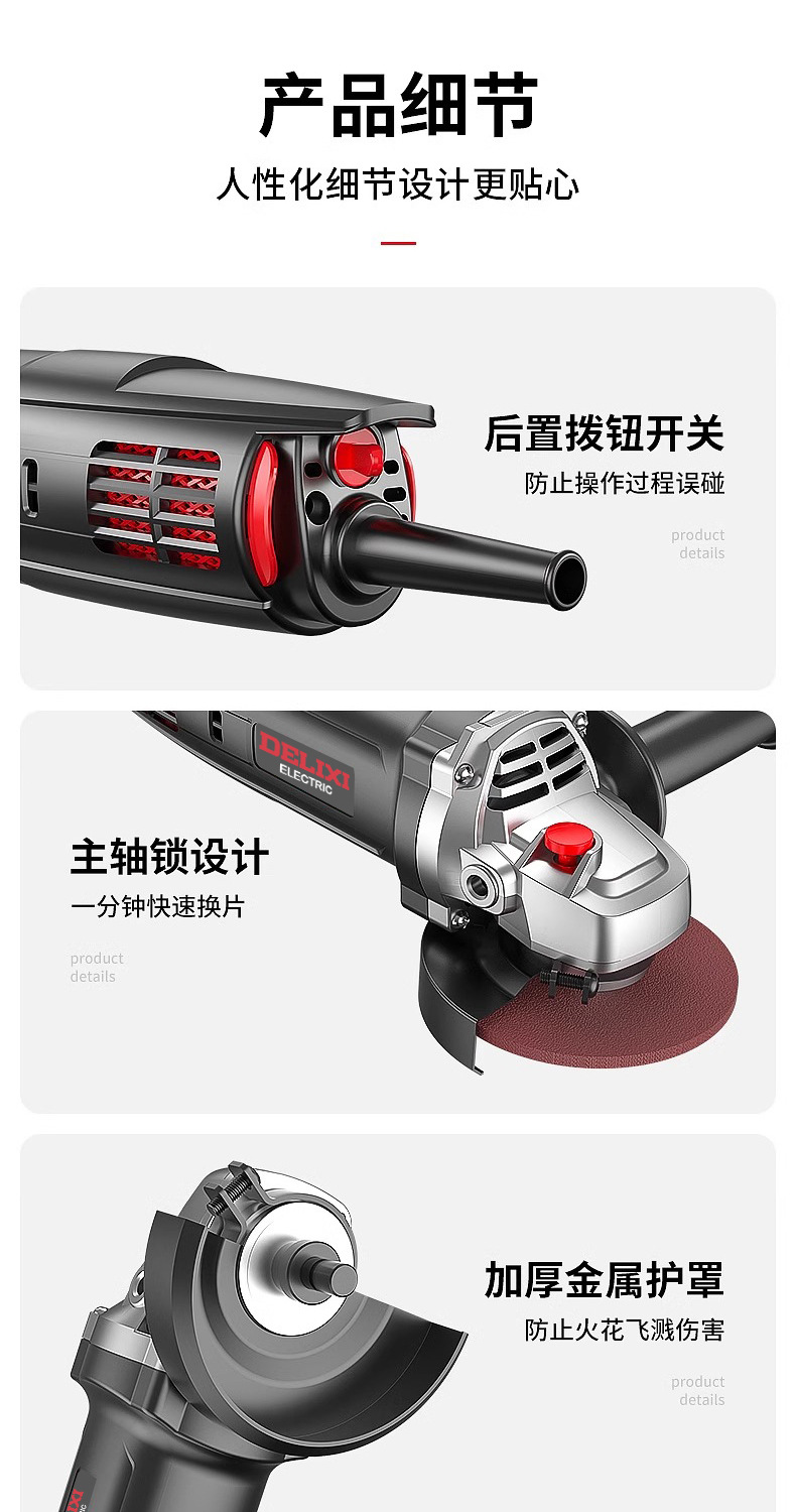 商品名称:德力西 角磨机 多功能切割机 家用手砂轮大功率手磨抛光打磨机磨光机