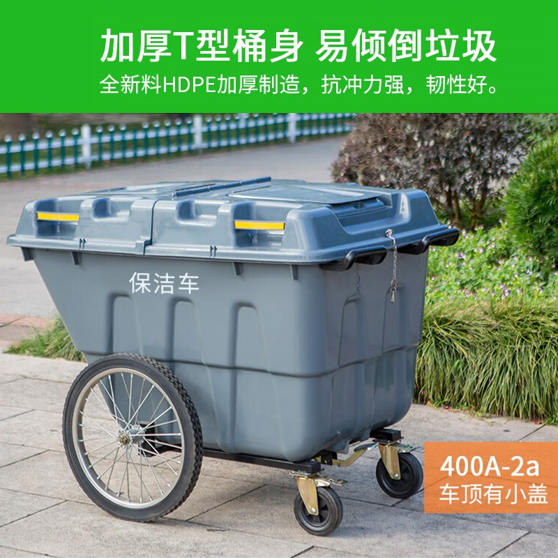 商品名称:保洁清运车 多功能手推车 垃圾车带盖 440L保洁车