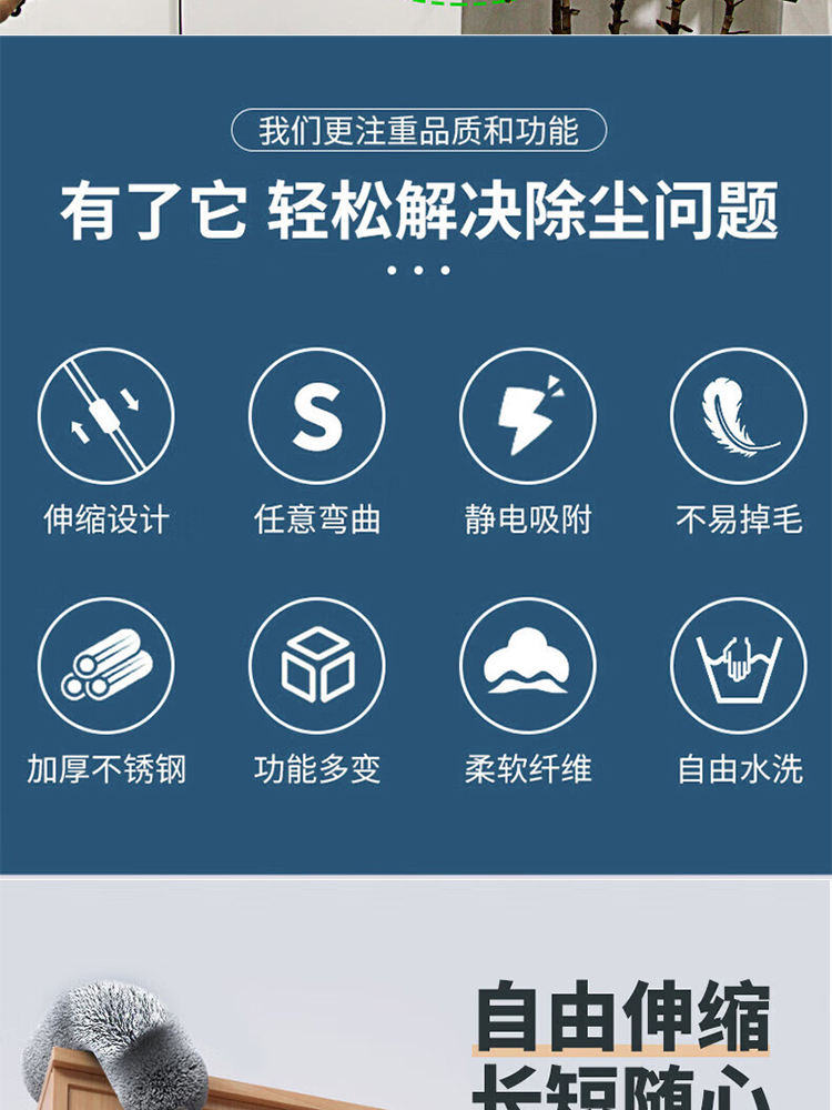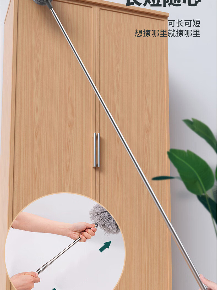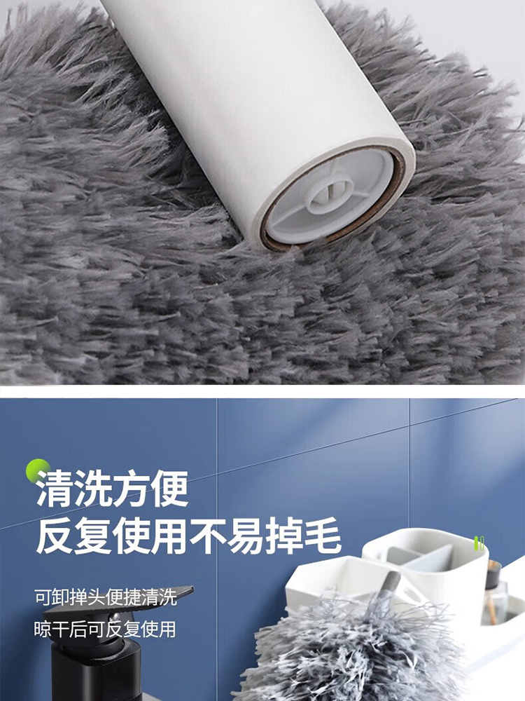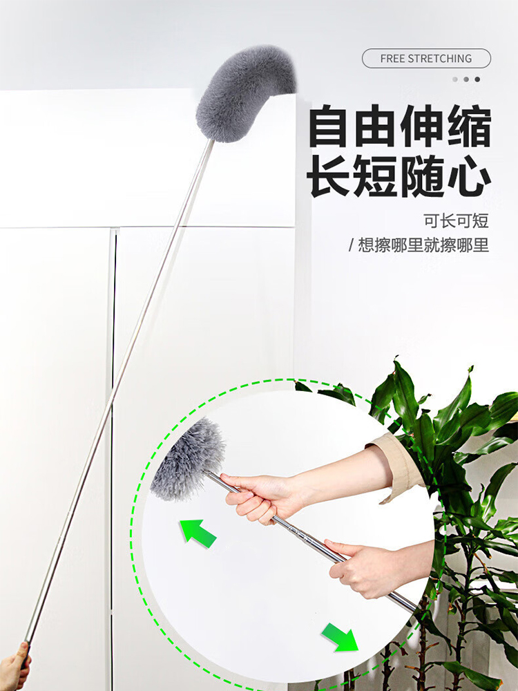 包装清单:1雷璟 鸡毛掸子 除尘伸缩可替换家用天花板打扫灰尘神器弯曲水洗不掉毛