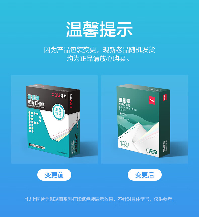 包装清单:1得力 珊瑚海电脑可撕边打印纸 一二三四五联分二等分三等分列送货单
