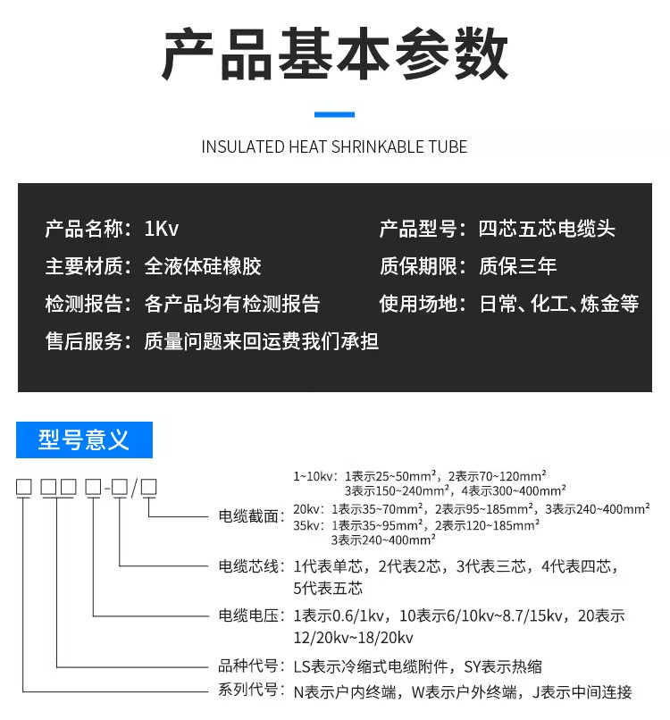 包装清单:1合恒工品 HHGP 冷缩电力电缆头 1KV 与电缆线3*50²匹配