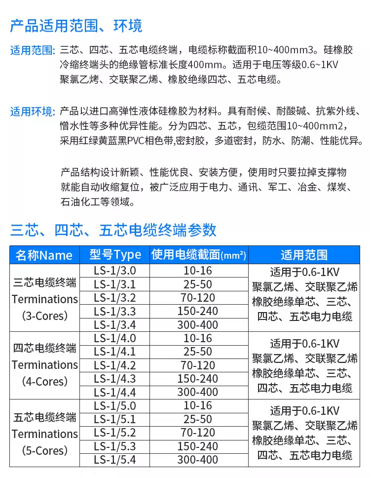 商品规格:1KV 与电缆线3*50²匹配