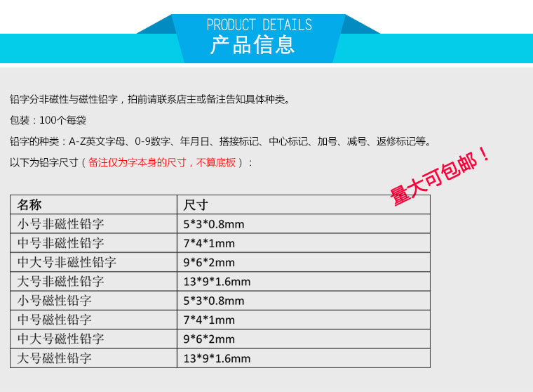 包装清单:1恒硕 非磁性铅字/磁性铅字 中文铅字 英文铅字 数字铅字