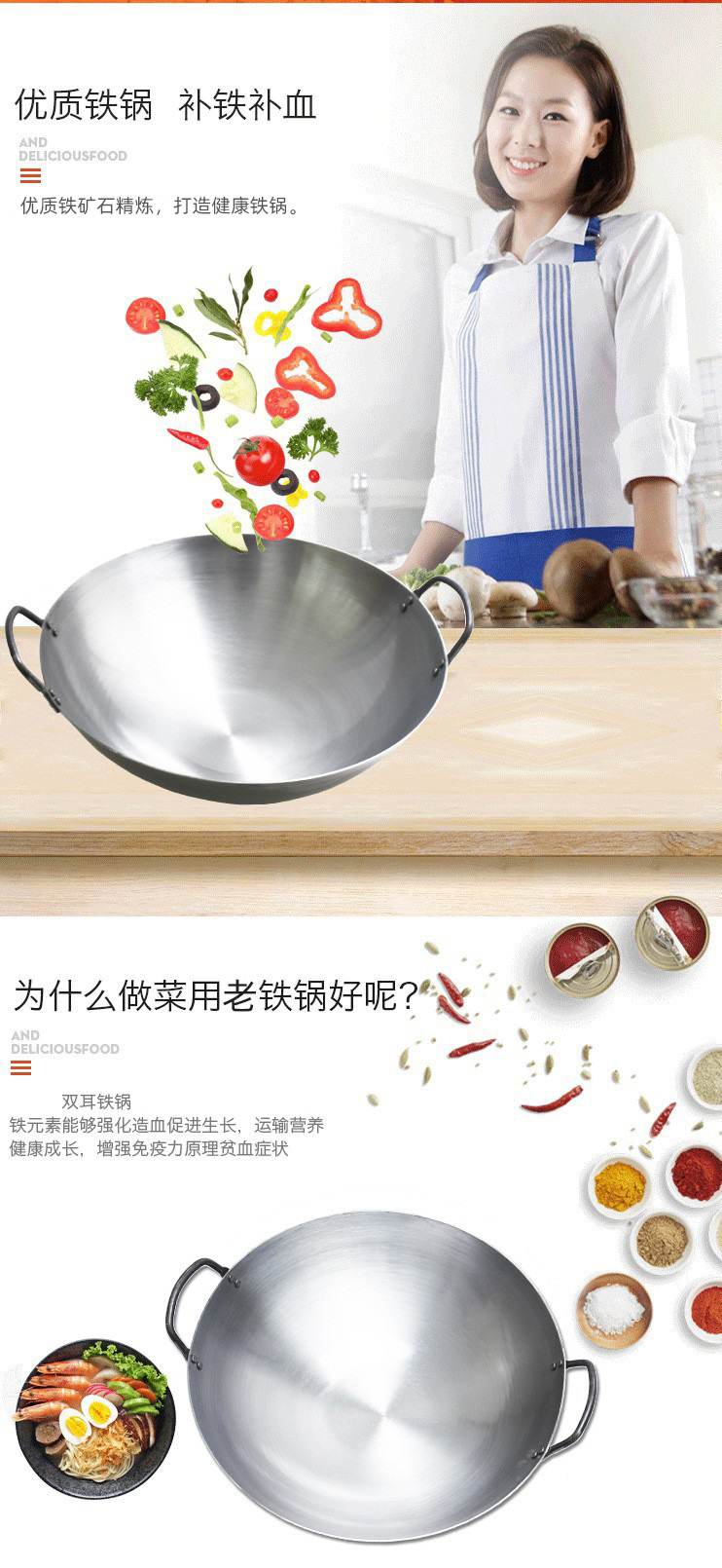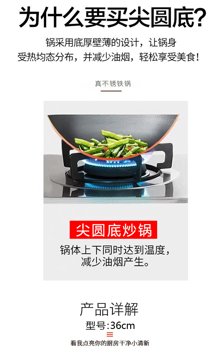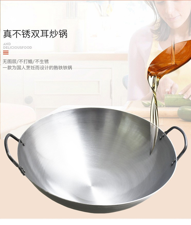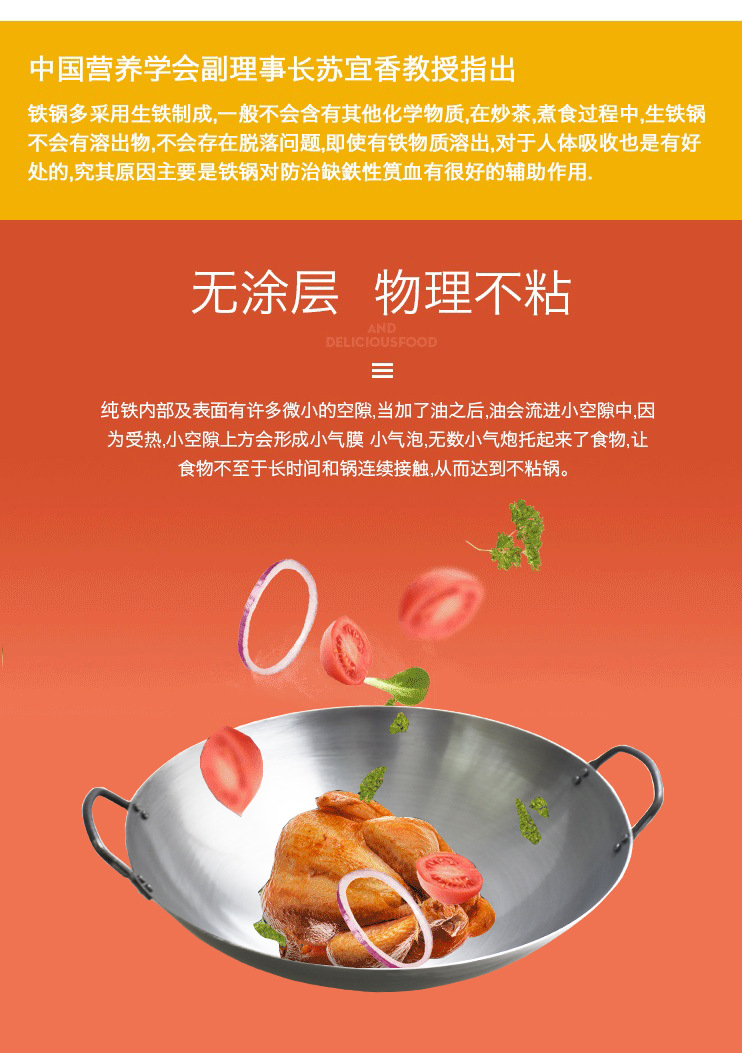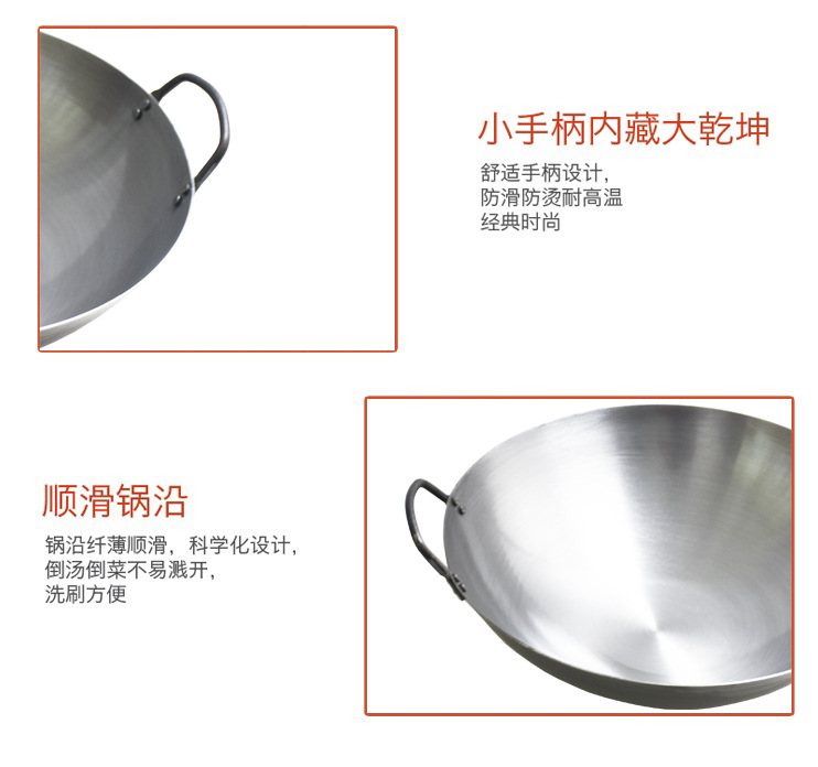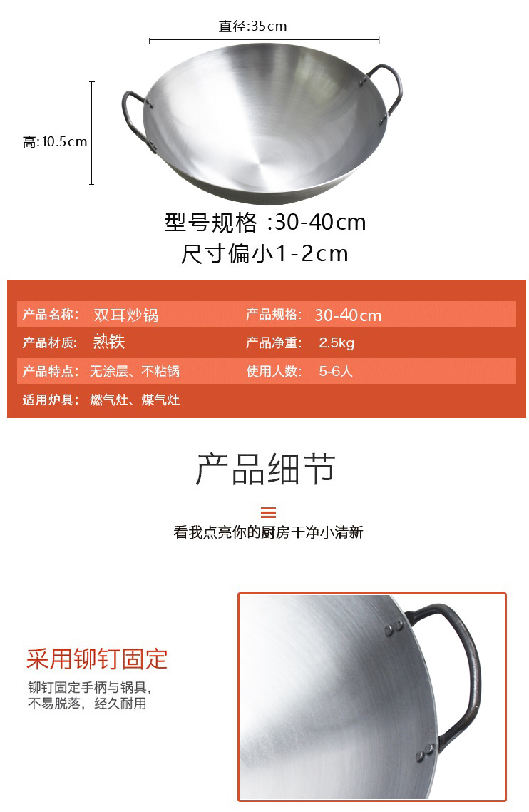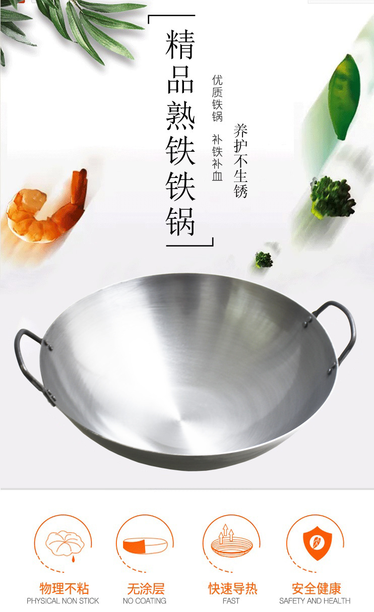 包装清单:1合恒工品 厨师专用铁锅 双耳炒锅 家用无涂层不粘锅 60CM