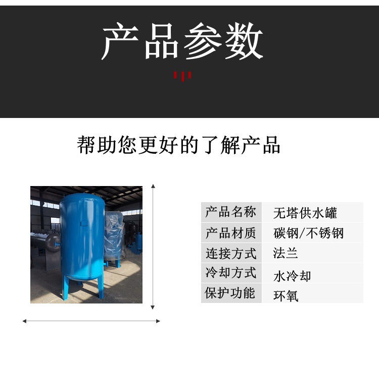 包装清单:1鑫神龙采暖系统用全自动无塔供水器 碳钢立式压力罐 自来水不锈钢储水罐