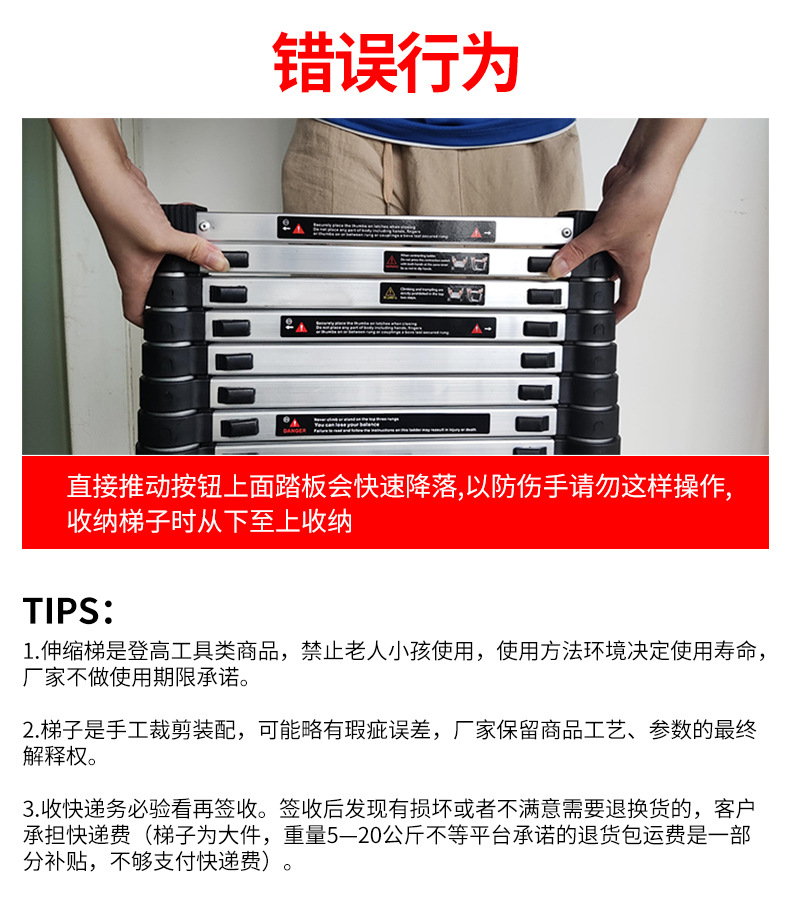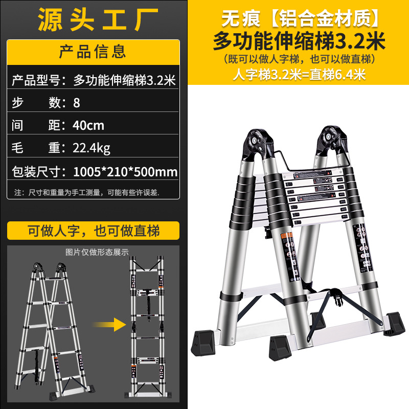 包装清单:1伸缩梯 铝合金多功能关节人字梯 家用折叠铝梯子 竹节梯楼梯