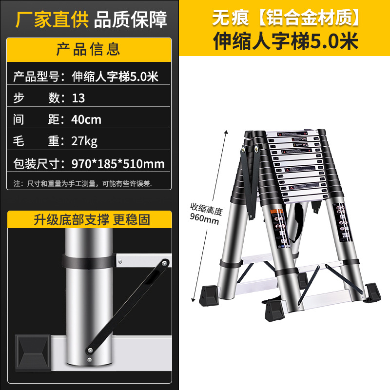 商品名称:伸缩梯 铝合金多功能关节人字梯 家用折叠铝梯子 竹节梯楼梯