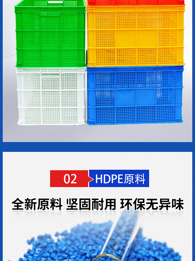包装清单:1合恒工品 长方形塑料筐 加厚水果蔬菜批发货框 快递发货框