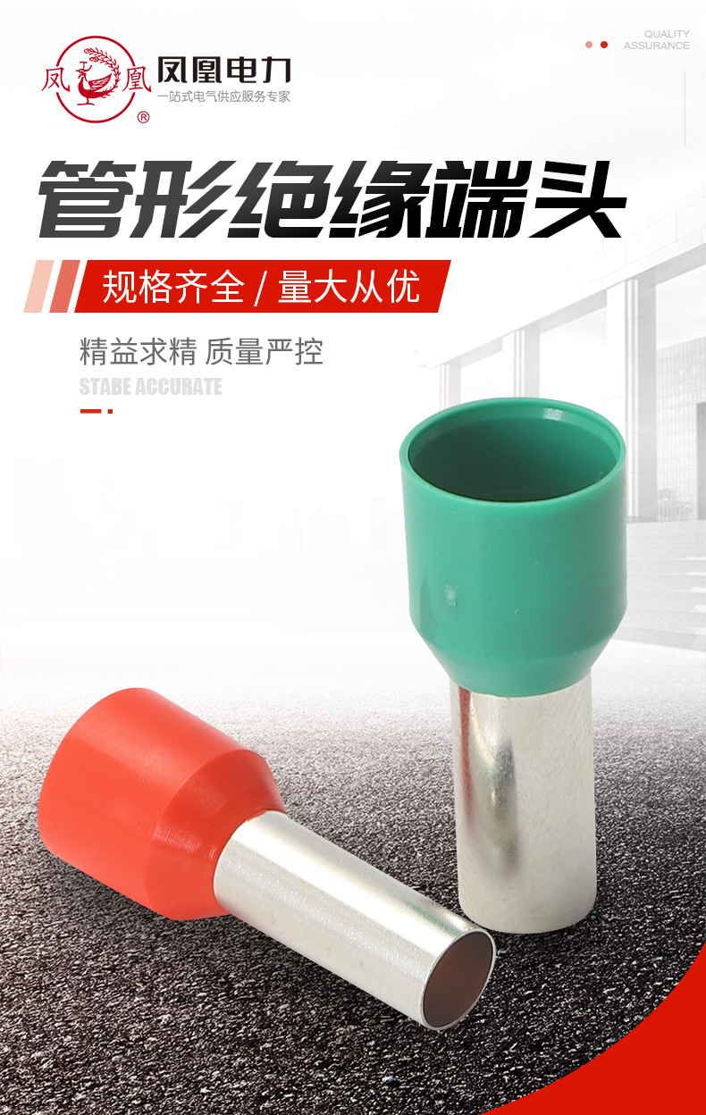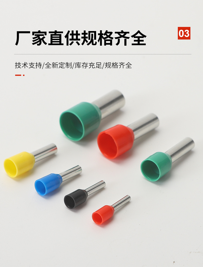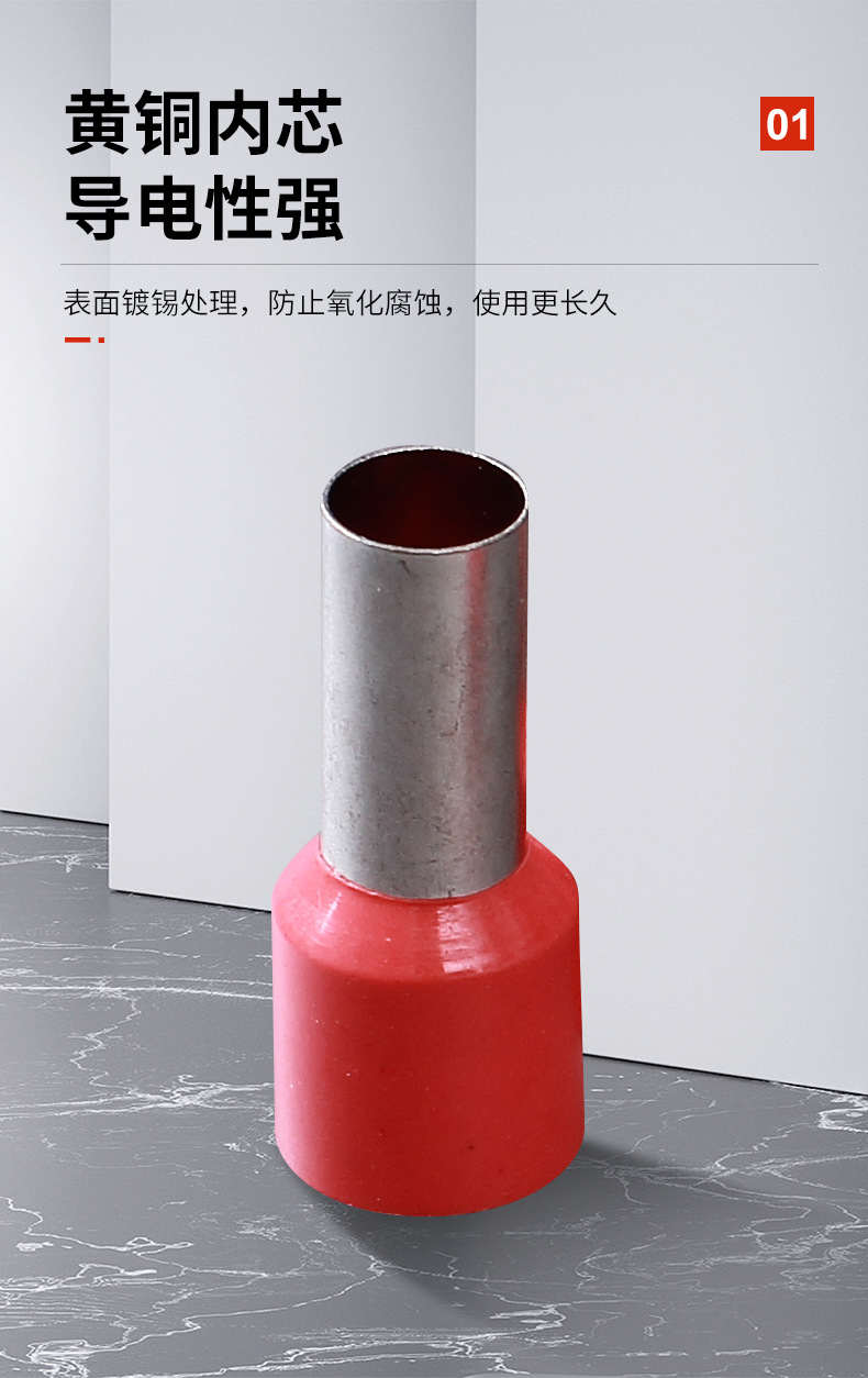 商品名称:合恒工品 铜镀锡冷压接线端子VE系列管型预绝缘端头欧式铜线耳针型 铜鼻子