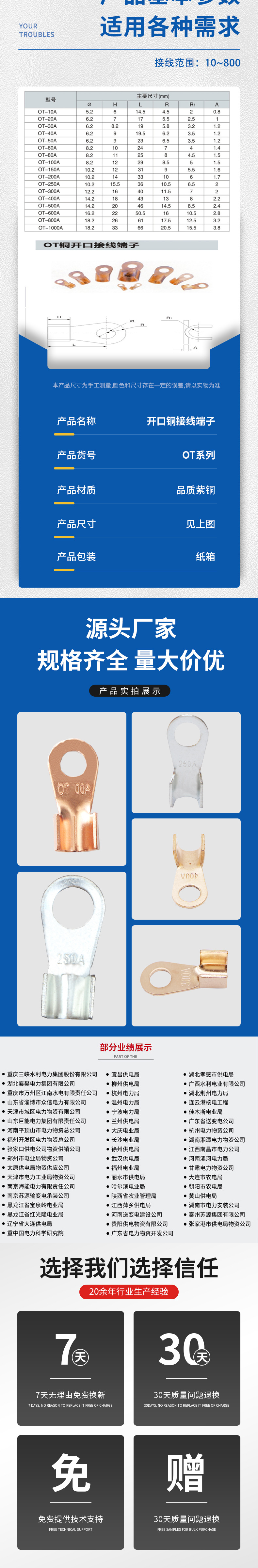 包装清单:1合恒工品 OT开口铜鼻子10A20A30A40A50A200A紫铜接线端子 电线冷压线 鼻国标