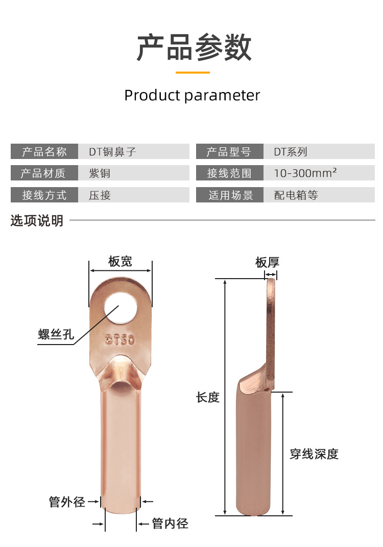 包装清单:1合恒工品 国标DTL铜铝鼻10-500平方过渡线鼻子电线缆终端接头接线端头线耳