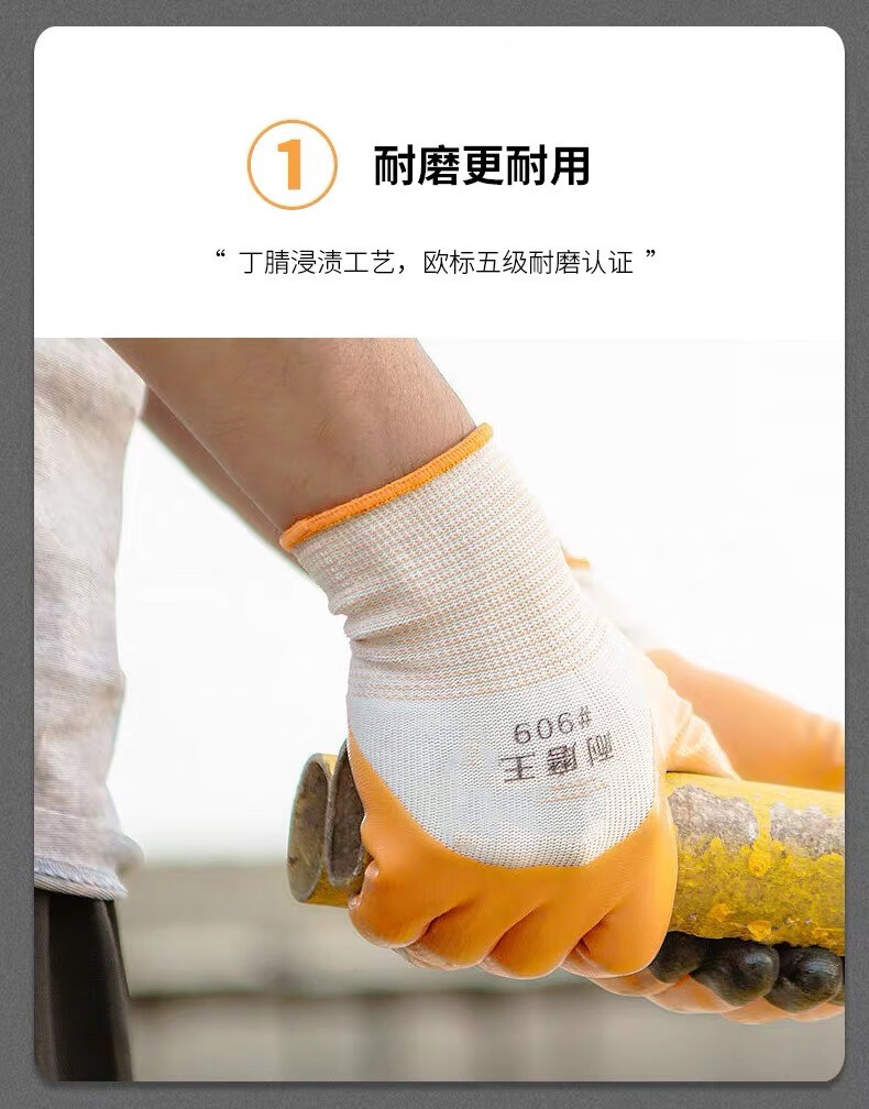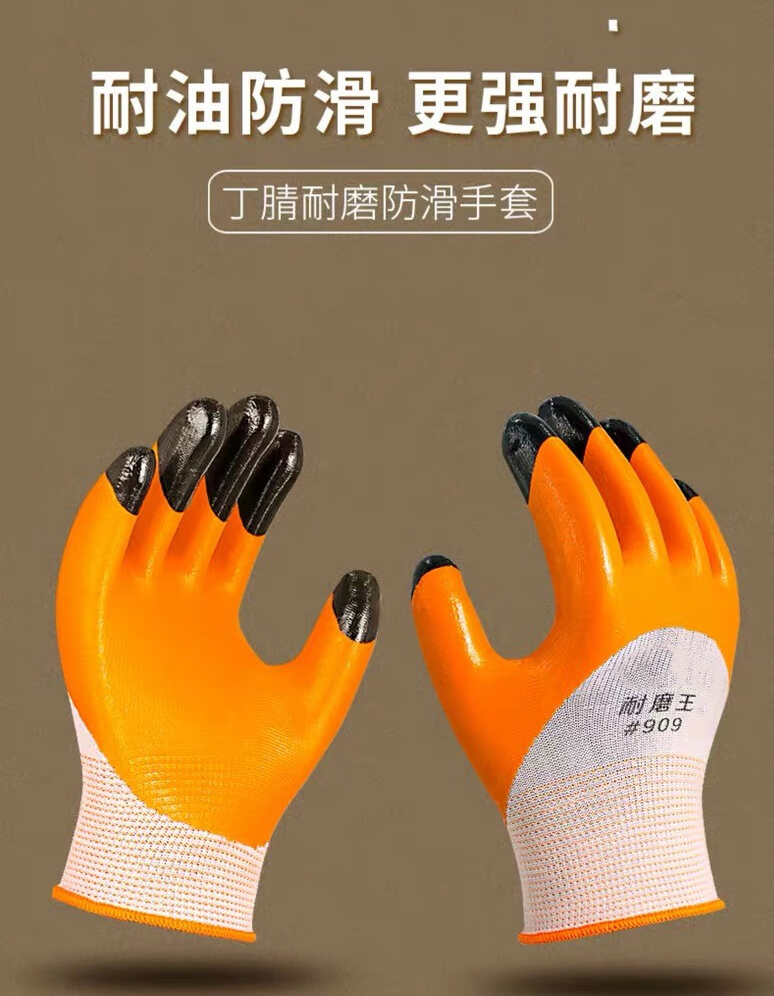 包装清单:1旭利达 丁晴加强指劳保手套耐磨工作防滑加厚橡胶防水耐油 丁晴加指(耐磨王)