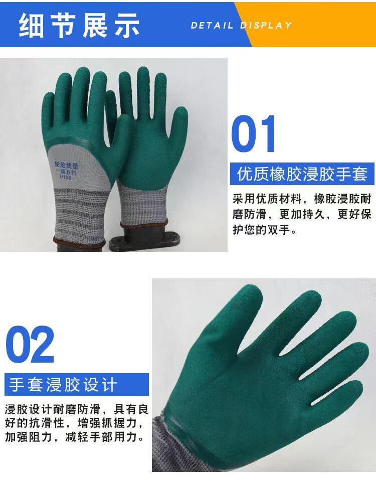 包装清单:1祥旭达 轮胎王橡胶手套耐磨透气 轮胎王平挂胶手套