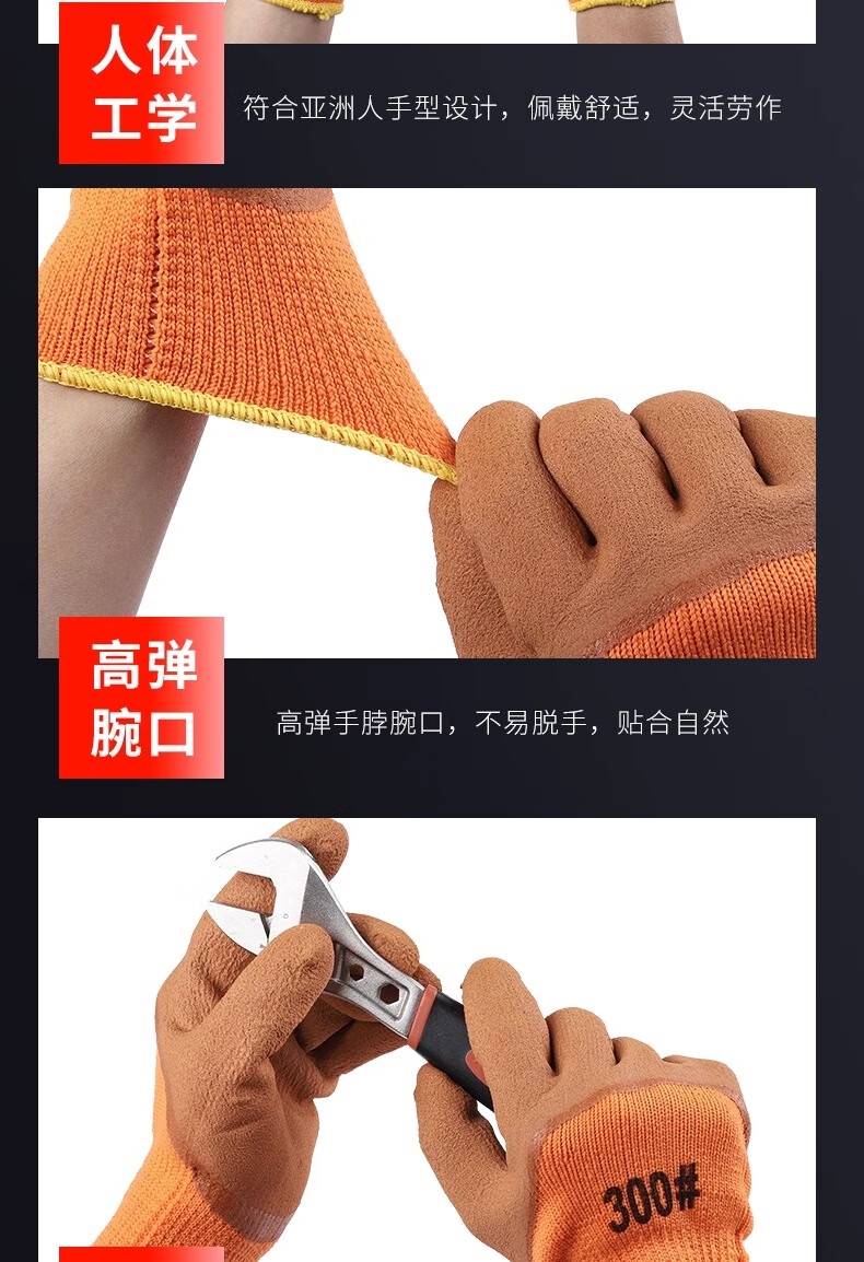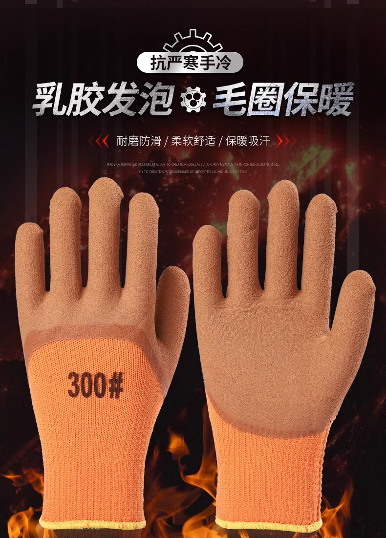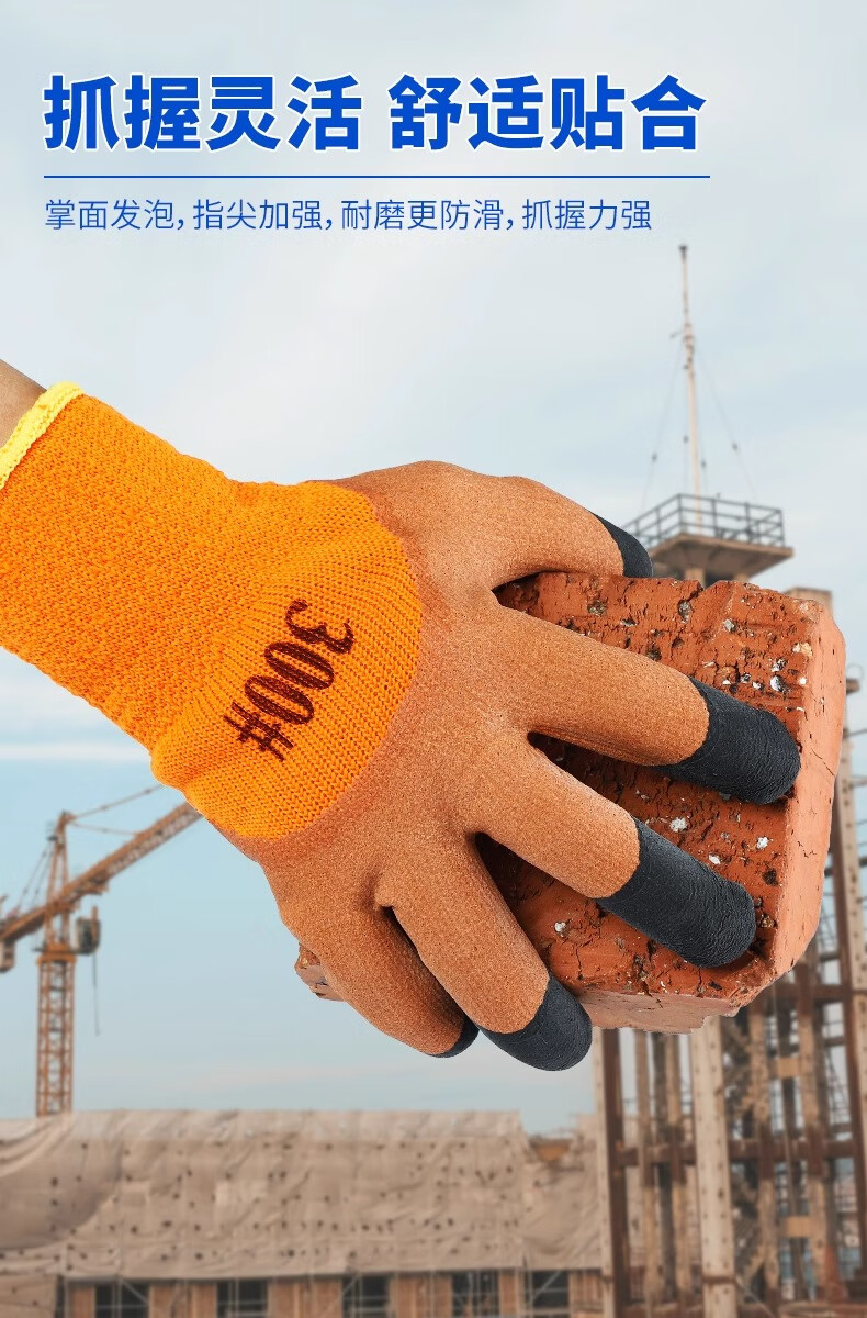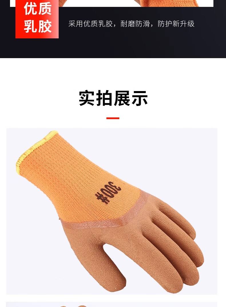 包装清单:付旭利达 毛圈加厚劳保手套冬季耐用耐磨工地透气发泡浸胶
