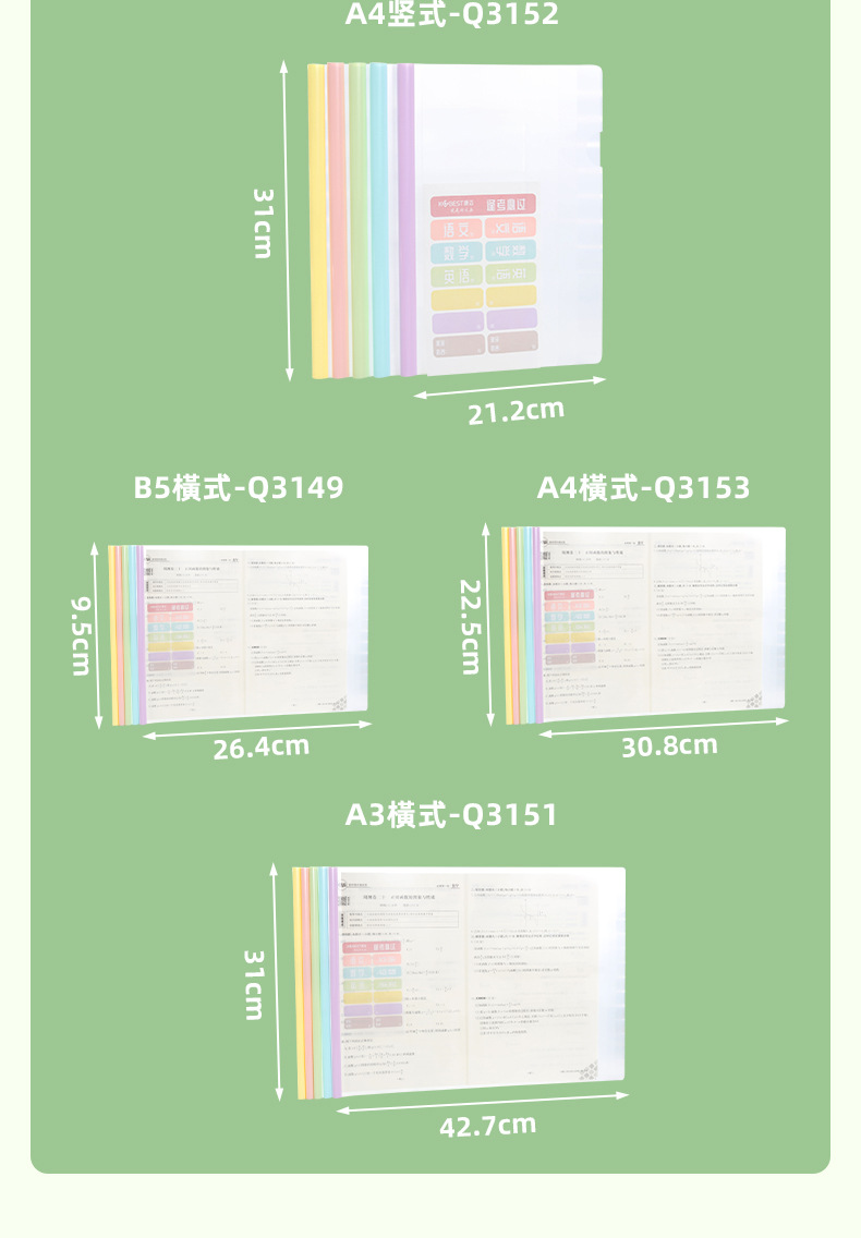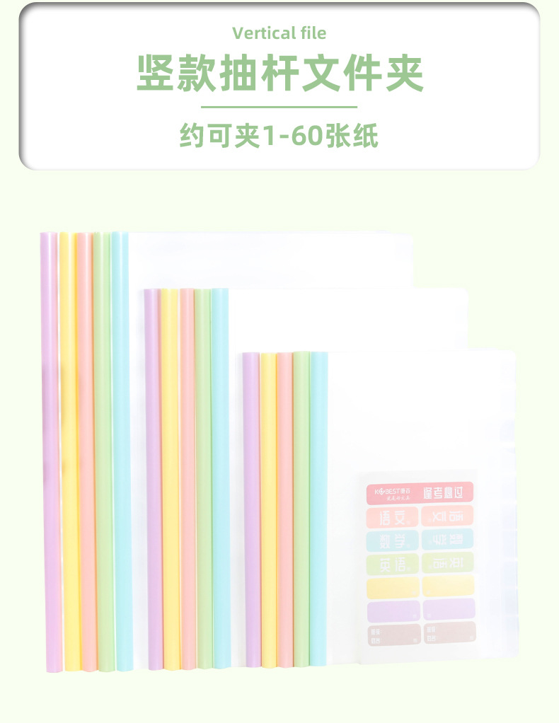 商品名称:合恒工品 HHGP 奶油色系学生横竖版抽杆夹多页夹试卷收纳册文件夹