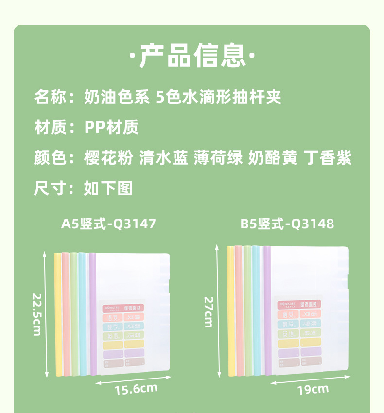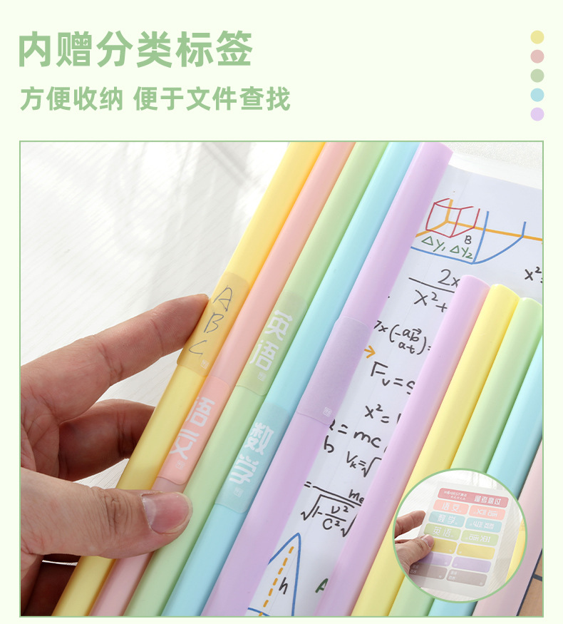包装清单:1合恒工品 HHGP 奶油色系学生横竖版抽杆夹多页夹试卷收纳册文件夹