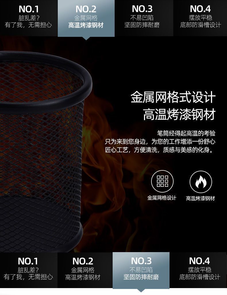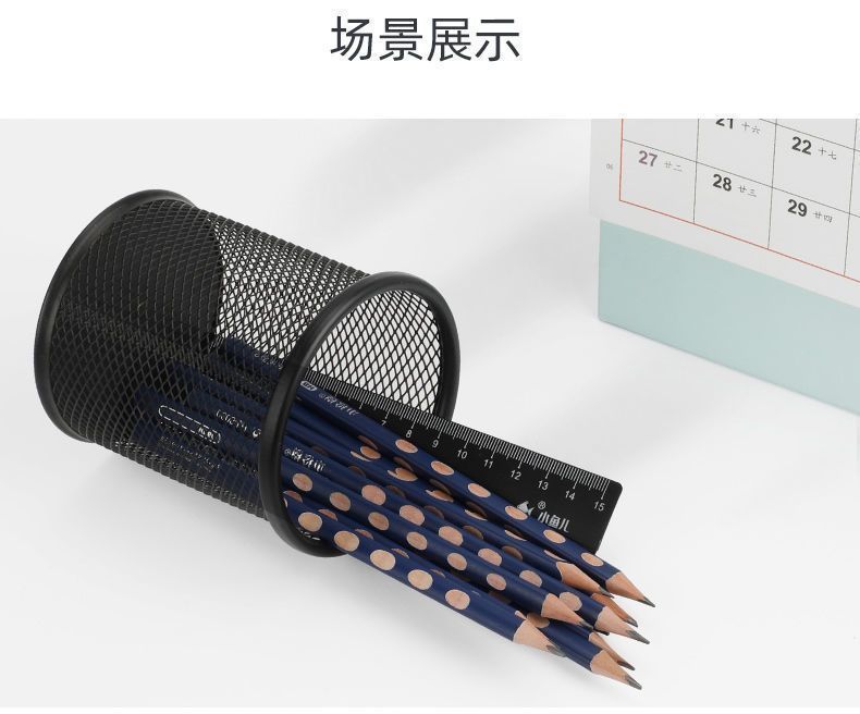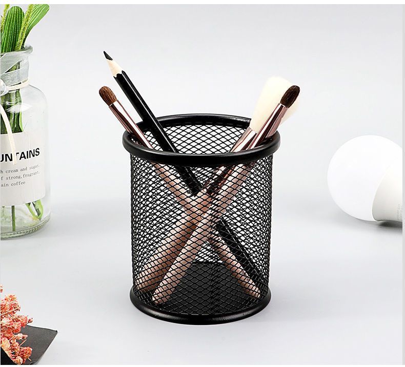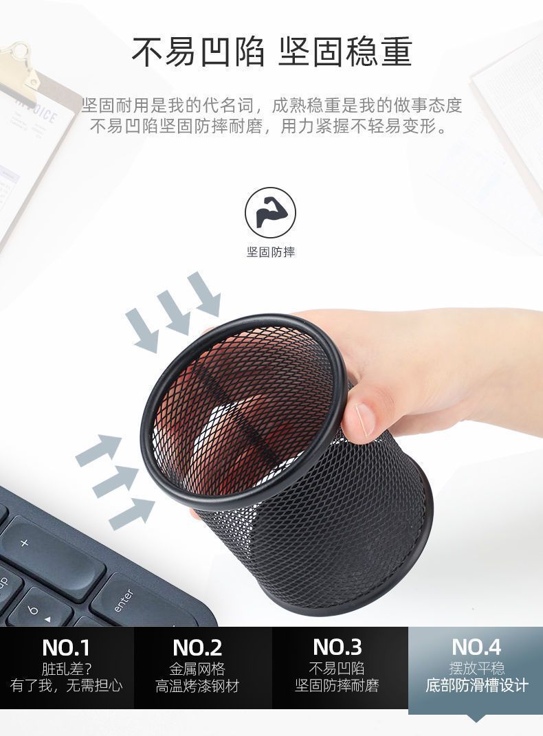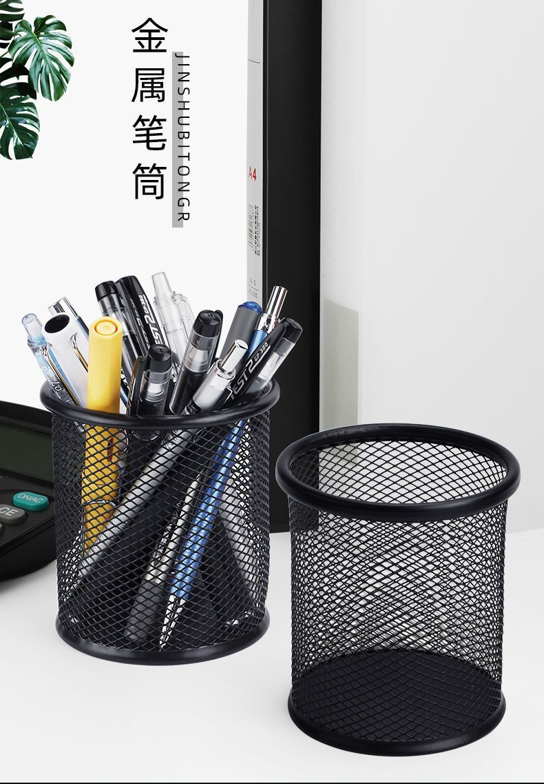商品名称:得力 deli 笔筒 圆形网格金属 笔筒收纳 学生办公桌面 多功能创意简约