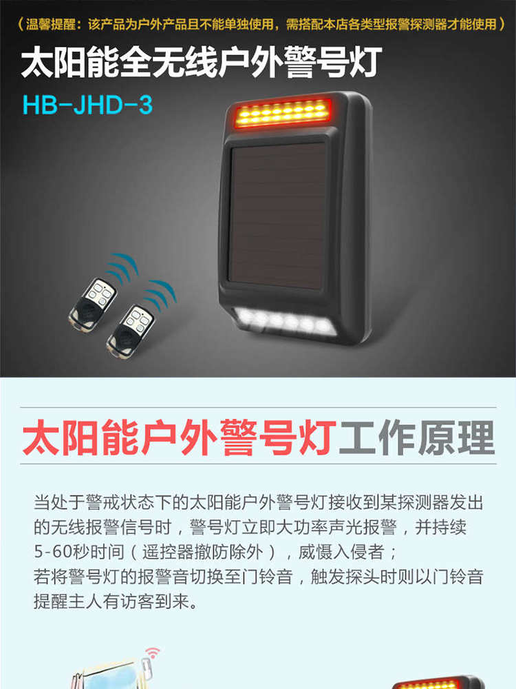 包装清单:1恒博 太阳能全无线户外警号 HB-JHD-2