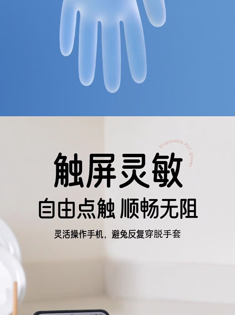 包装清单:1合恒工品 PVC手套、透明薄款手套 24cm 薄款透明pvc手套