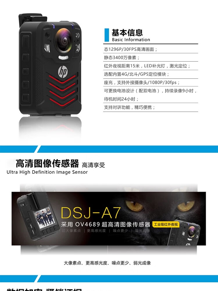 商品名称:惠普 HP 执法记录仪 DSJ-A7 内存32G
