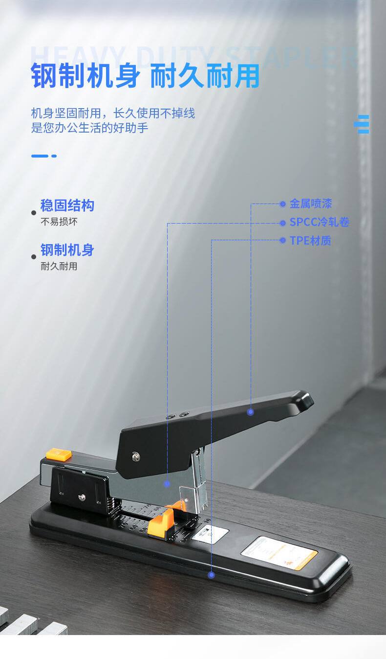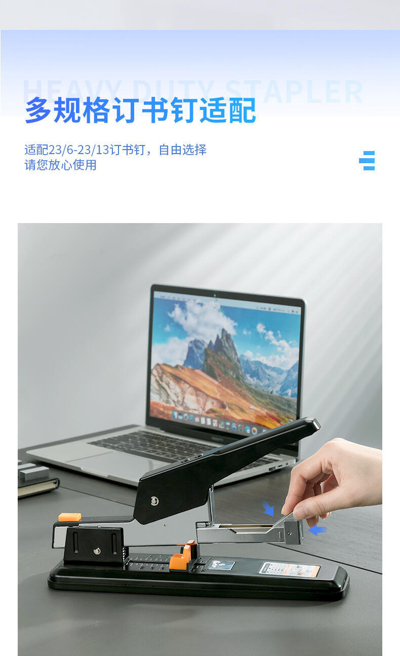 商品名称:合恒工品 重型订书机 学生办公省力装订厚书带刻度大号订书器