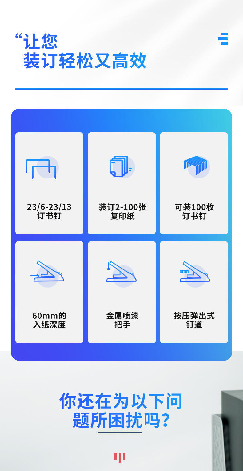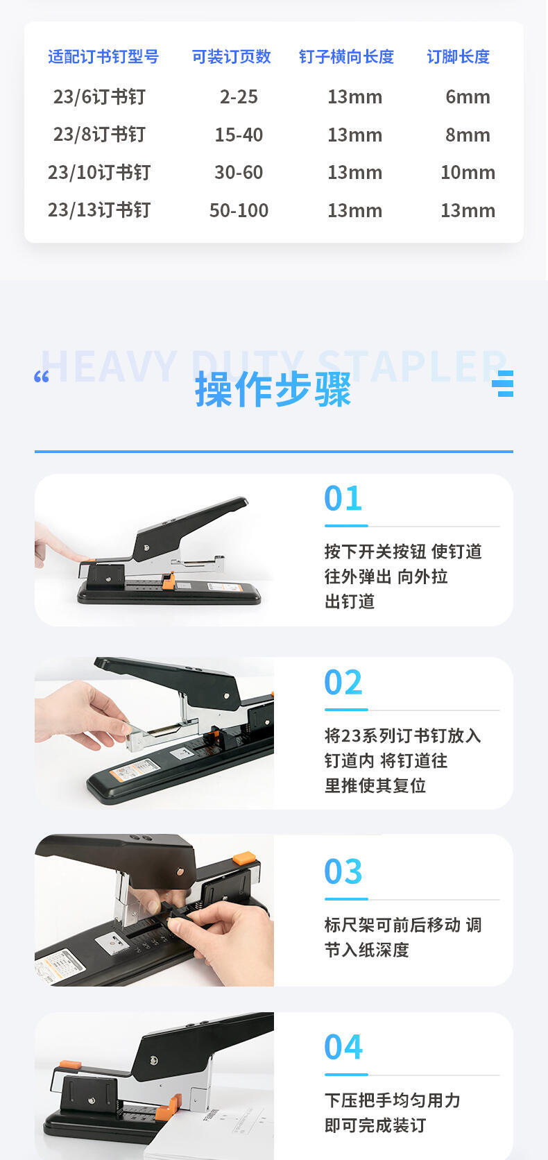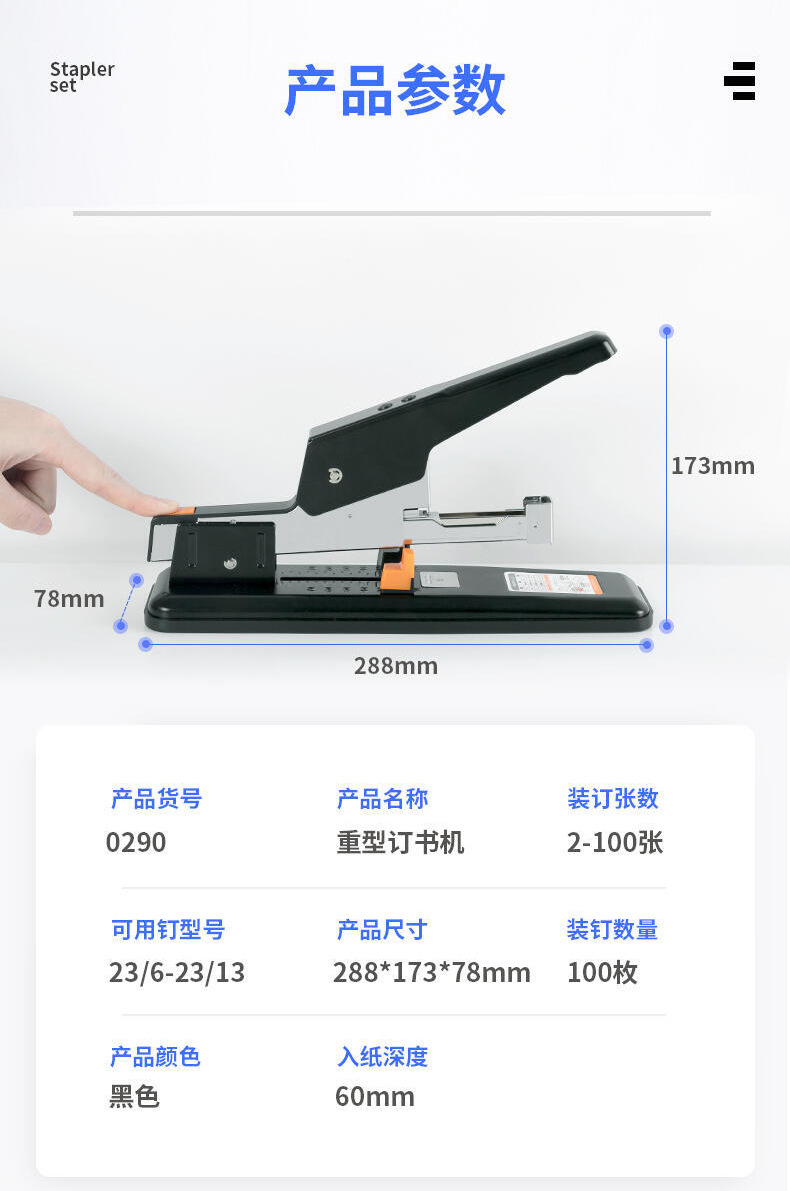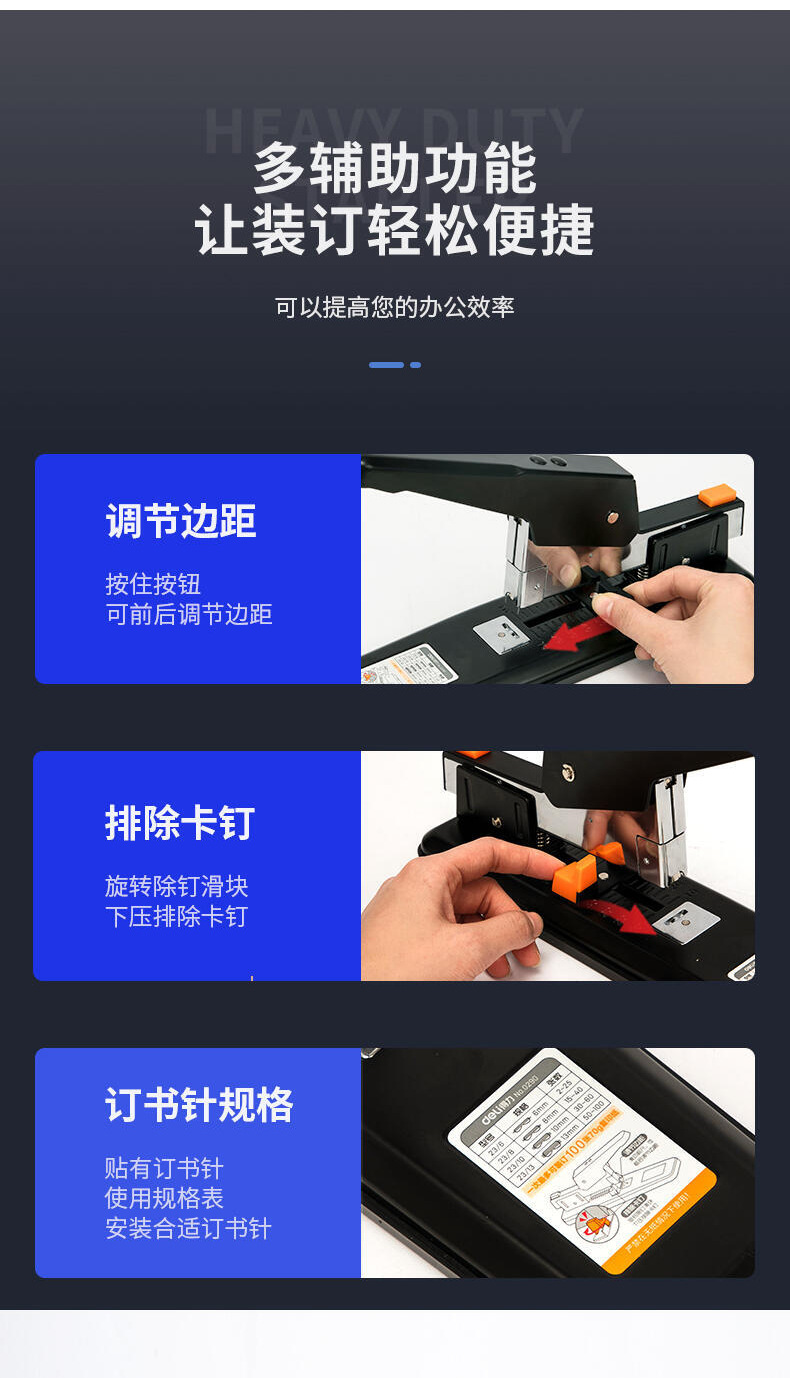 包装清单:1合恒工品 重型订书机 学生办公省力装订厚书带刻度大号订书器